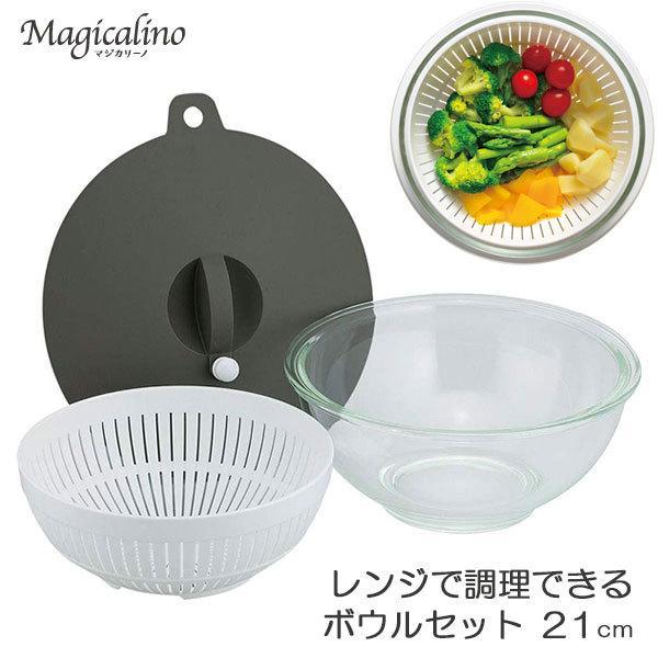マジカリーノ 耐熱ガラスボウルセット 21cm Re 7269 ボウル コランダー シリコーン蓋 ボール ザル 調理器具 電子レンジ用 セット びーんず生活雑貨デポ 通販 Paypayモール